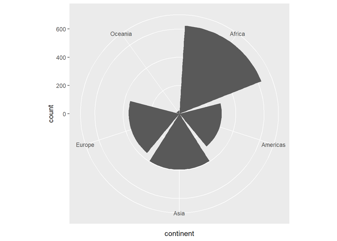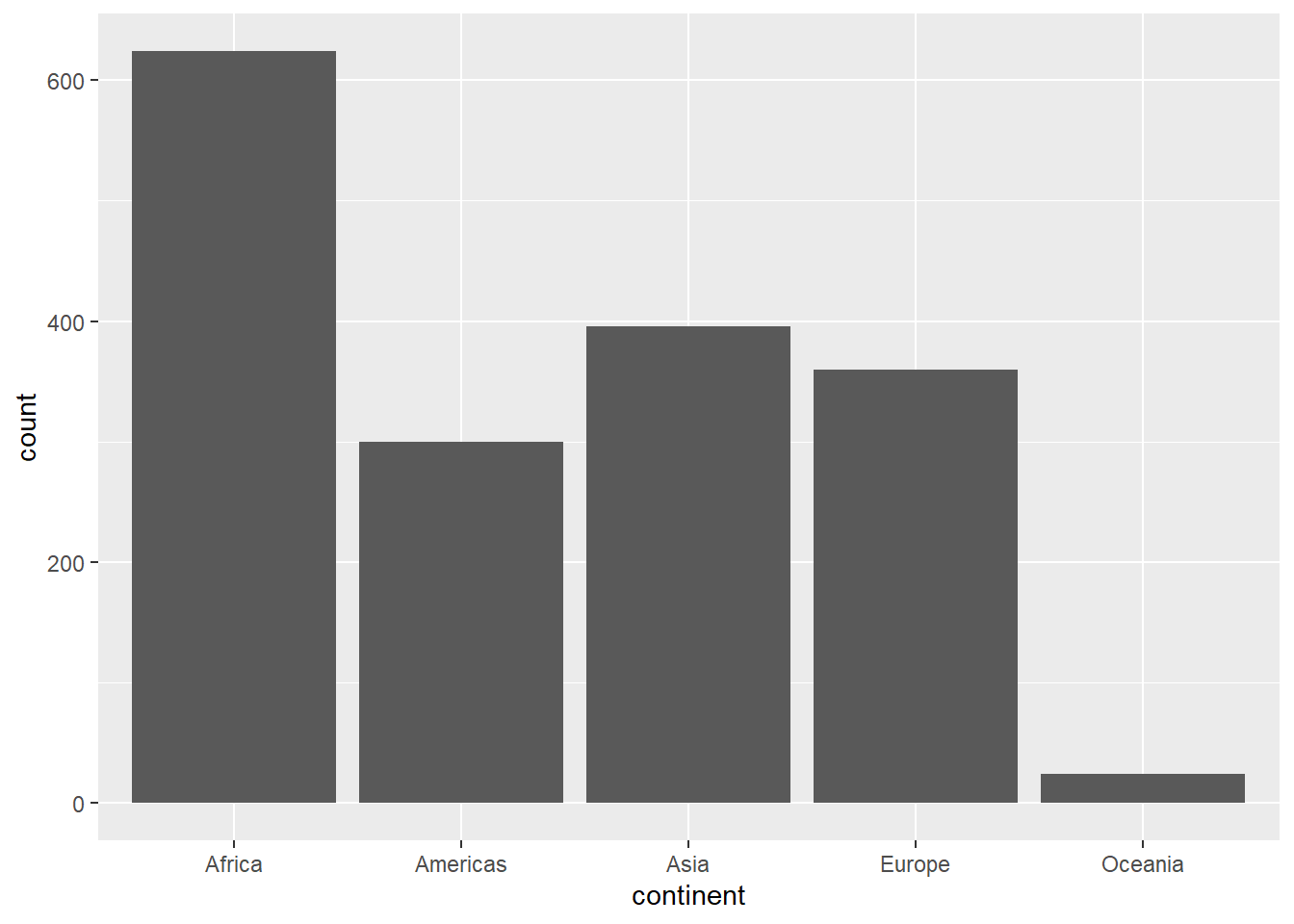 plot1 <- ggplot(gapminder, aes(x=continent)) + geom_bar()