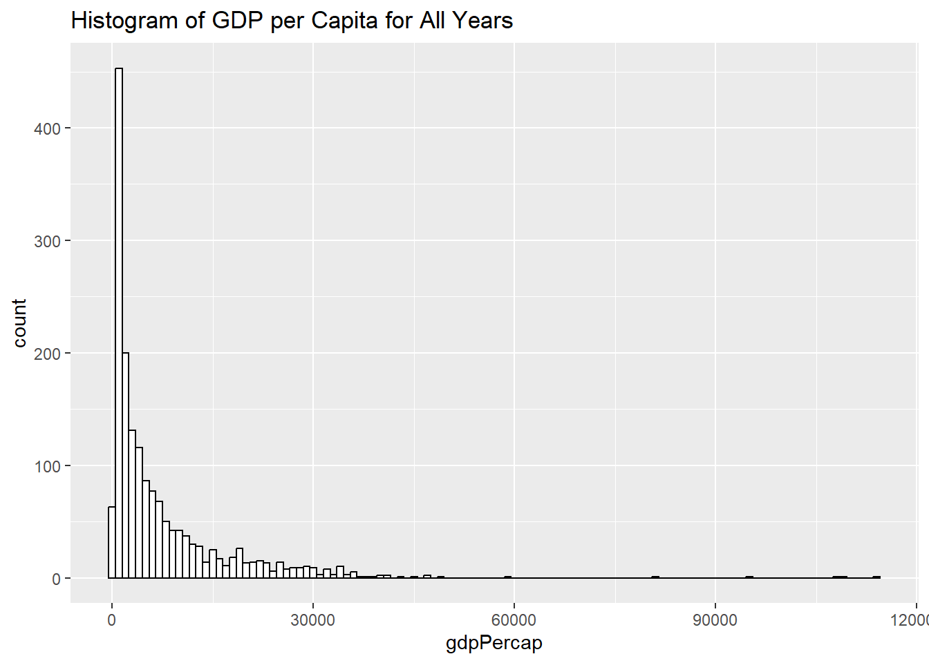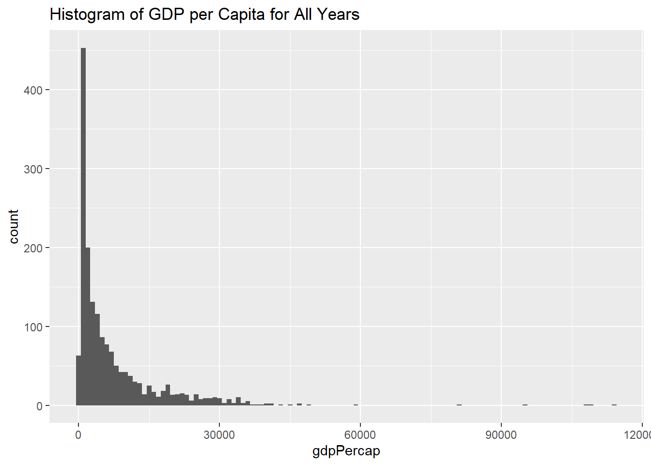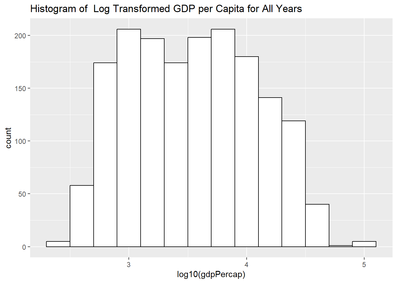 labs(title = "Histogram of Log Transformed GDP per Capita for All Years")